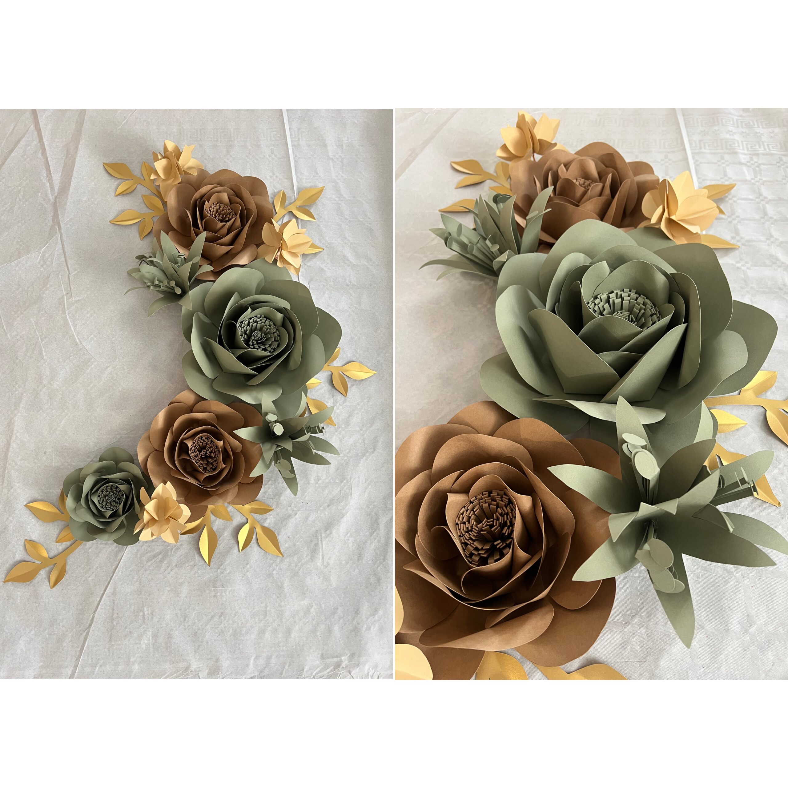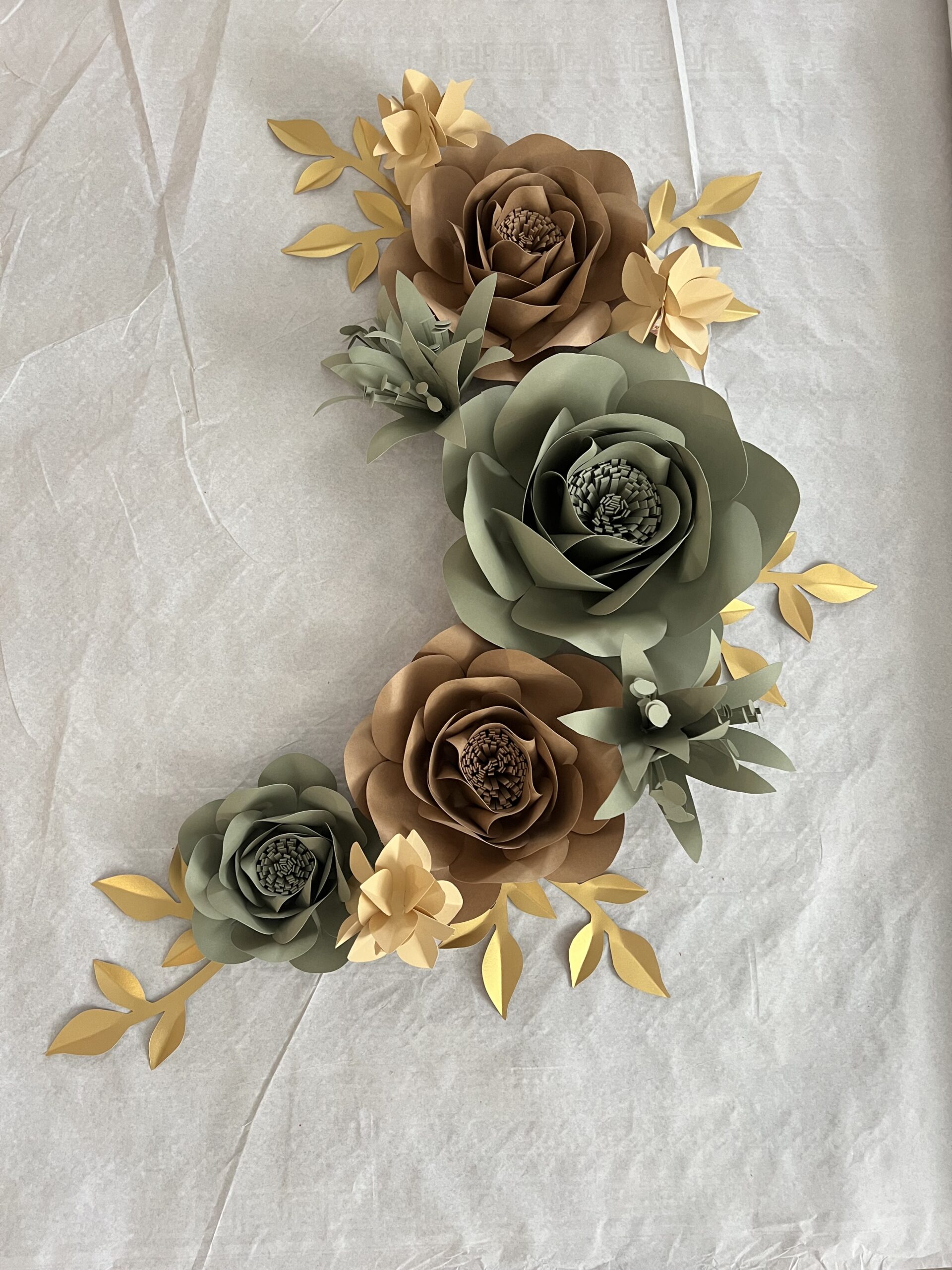Couleurs utilisées : Vert sauge, marron, crème sable et doré pour les feuilles.