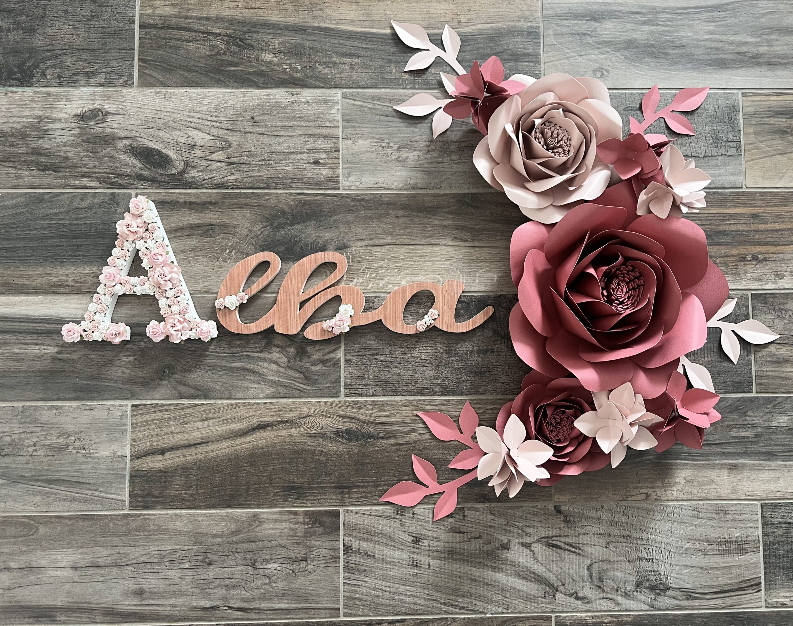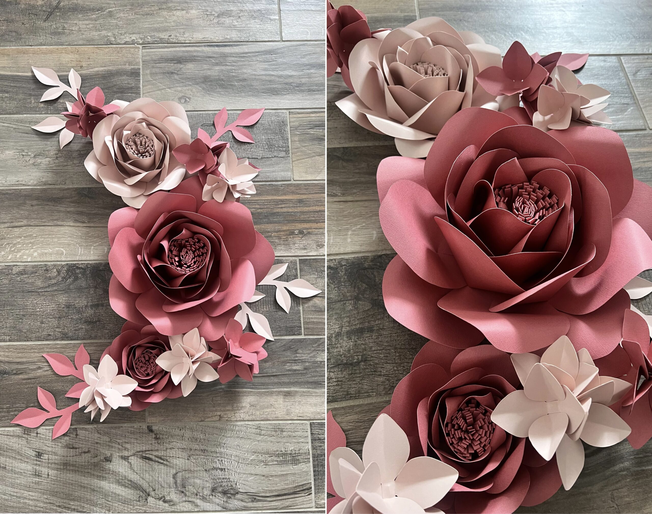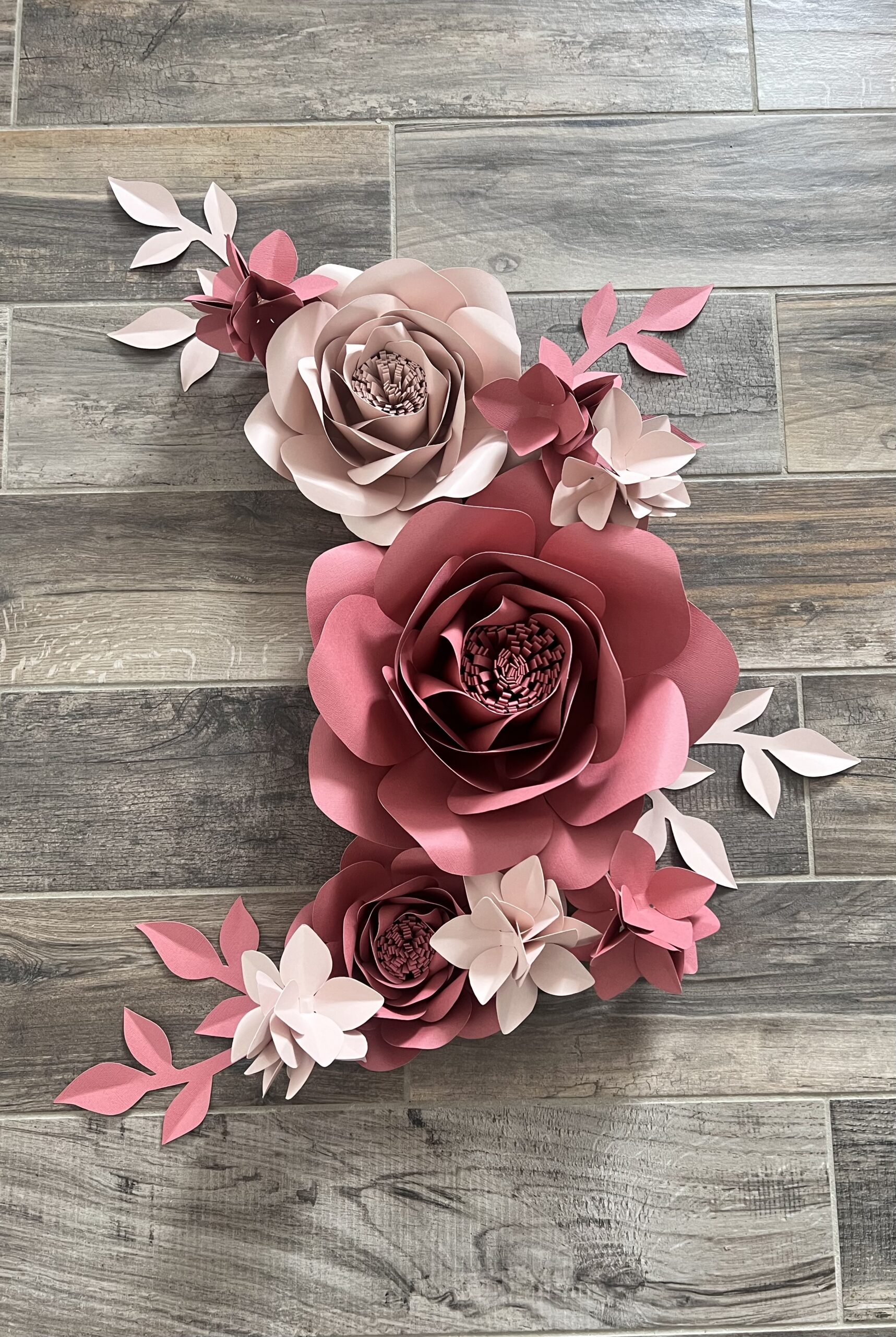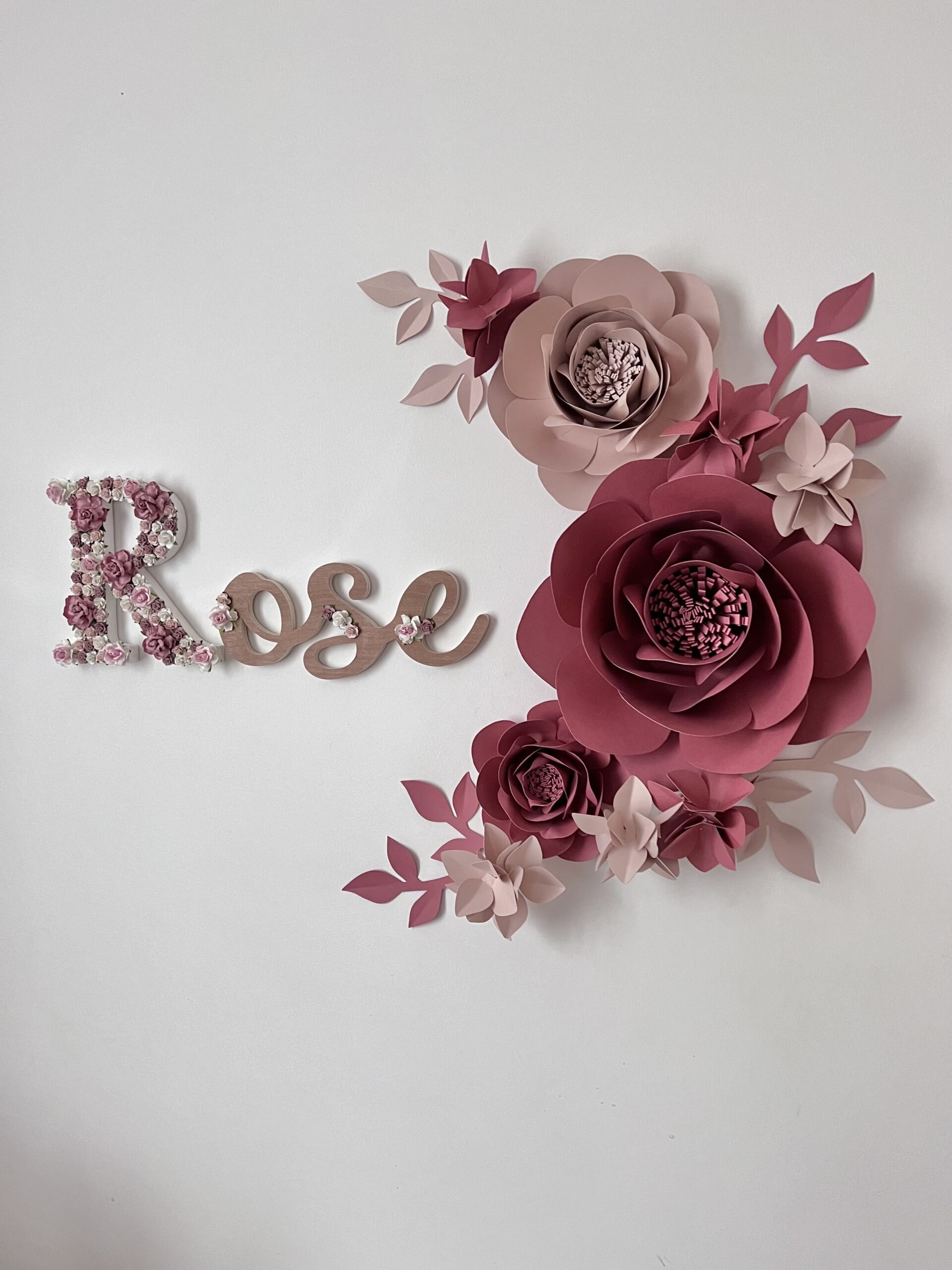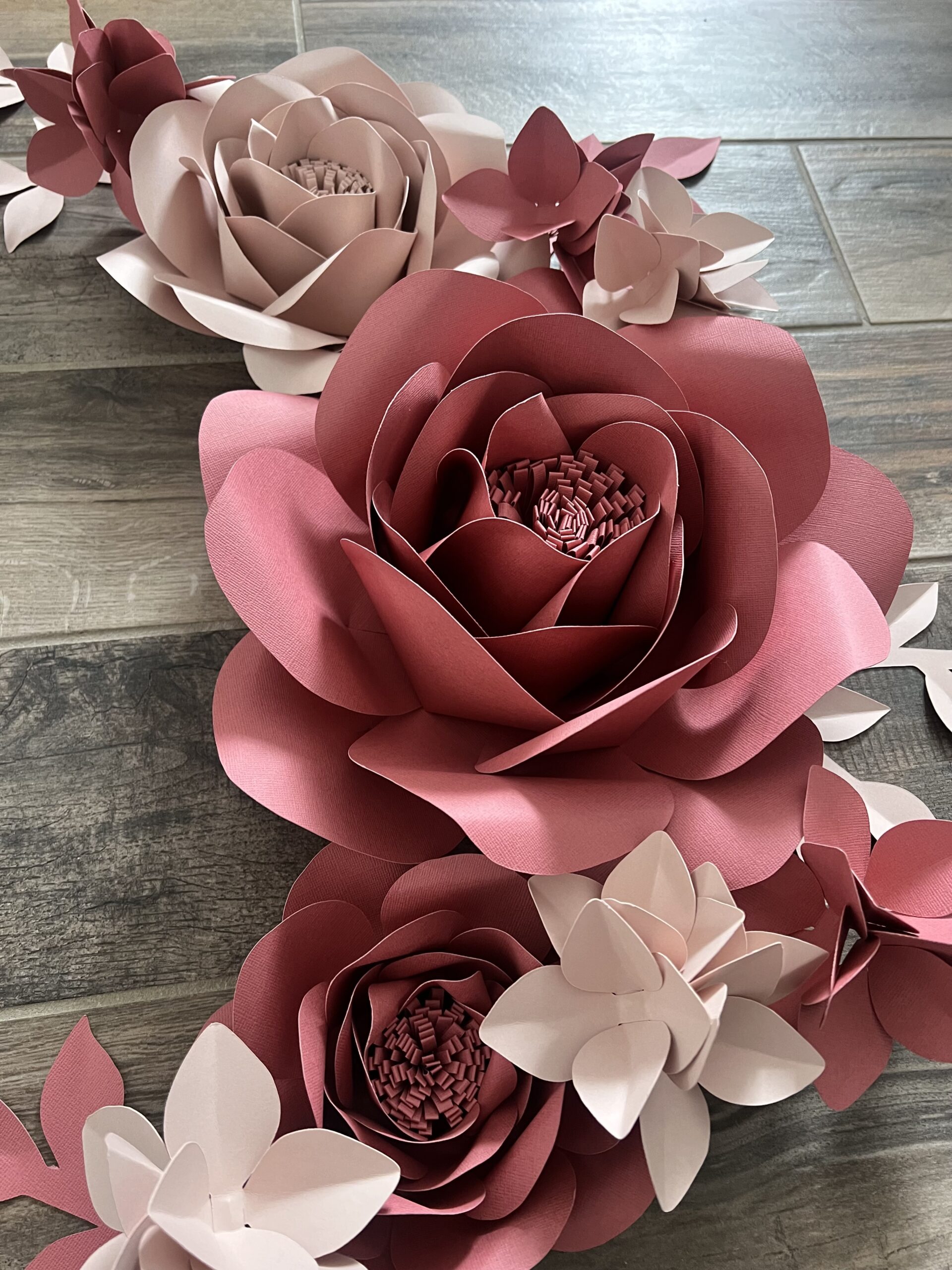 – 4 feuilles (2 en rose pâle et 2 en vieux rose)